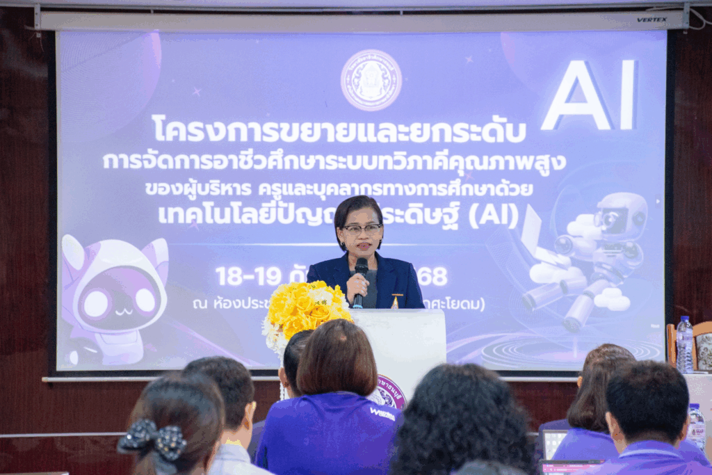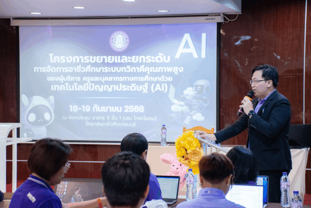 ในระหว่างวันที่ 18–19 กันยายน 2568 วิทยาลัยอาชีวศึกษาธนบุรี ได้จัดโครงการขยายและยกระดับการจัดการอาชีวศึกษาระบบทวิภาคี คุณภาพสูงของผู้บริหาร ครู และบุคลากรทางการศึกษา ด้วยเทคโนโลยีปัญญาประดิษฐ์ (AI) ณ ห้องประชุมพระยา