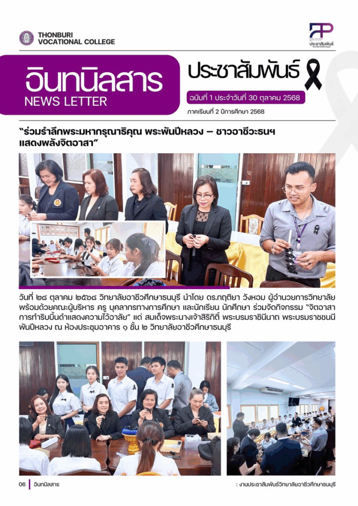 วิทยาลัยอาชีวศึกษาธนบุรี นำโดย ดร.กฤติยา วังหอม ผู้อำนวยการวิทยาลัย พร้อมด้วยคณะผู้บริหาร ครู บุคลากรทางการศึกษา และนักเรียน นักศึกษา