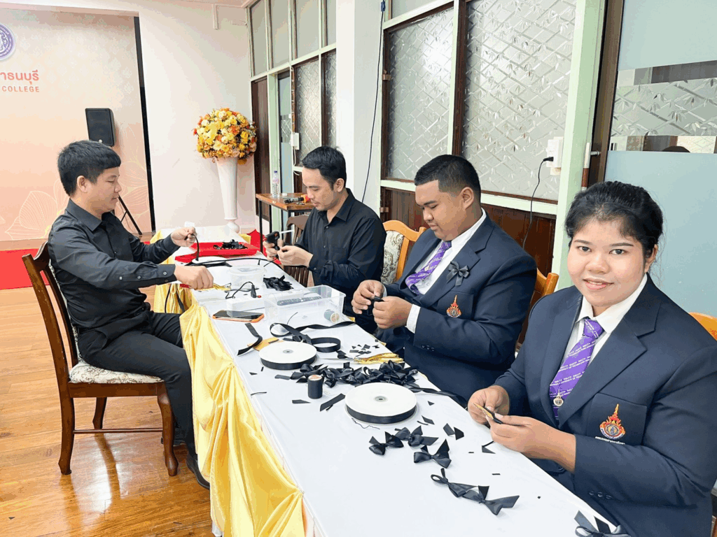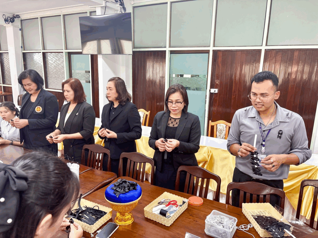 โดยทุกคนได้ร่วมกันทำริบบิ้นดำ และติดเป็นสัญลักษณ์แห่งความอาลัยด้วยความสงบ สำรวม และสำนึกในพระมหากรุณาธิคุณอันหาที่สุดมิได้