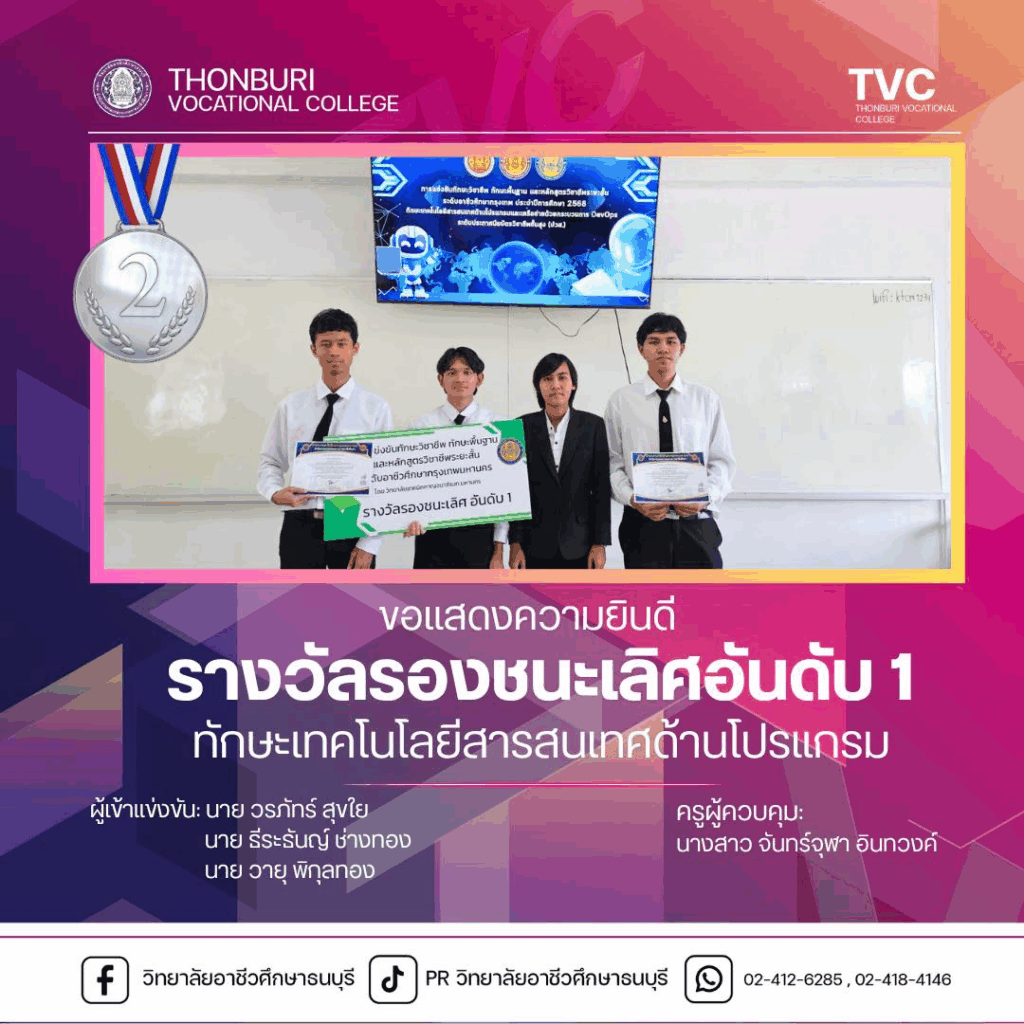ผลการแข่งขัน ทีมตัวแทนจากวิทยาลัยอาชีวศึกษาธนบุรี