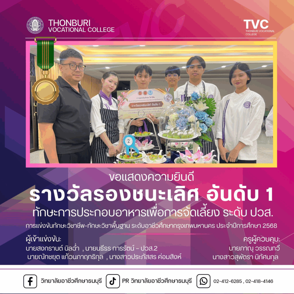 ความสามารถที่ผสาน “ศิลปะบนจานอาหาร” เข้ากับ “หัวใจของการบริการ”นักศึกษาวิทยาลัยอาชีวศึกษาธนบุรี สาขาอาหารและโภชนาการ