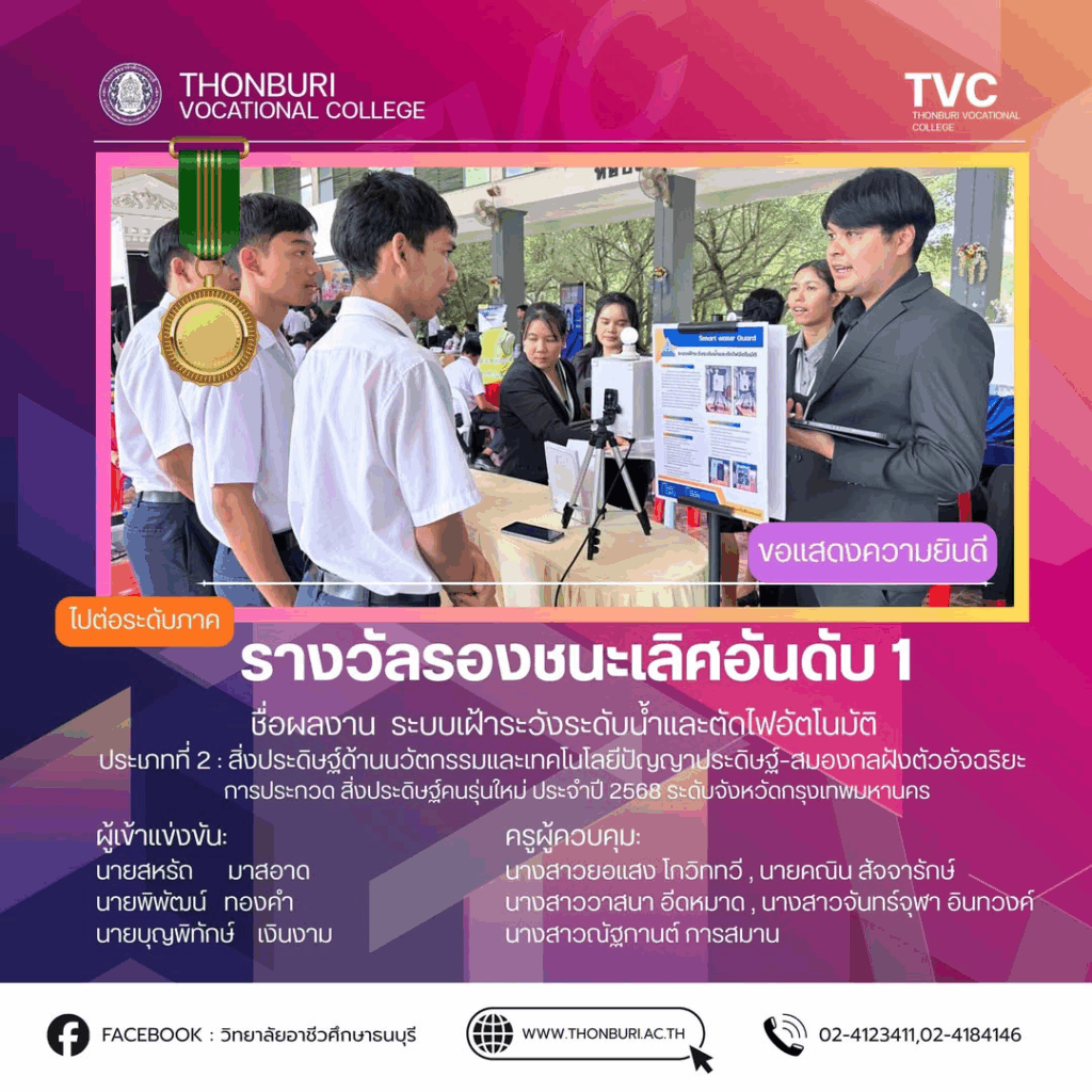แผนกวิชาเทคโนโลยีสารสนเทศ วิทยาลัยอาชีวศึกษาธนบุรี คว้ารางวัล รองชนะเลิศอันดับ 1