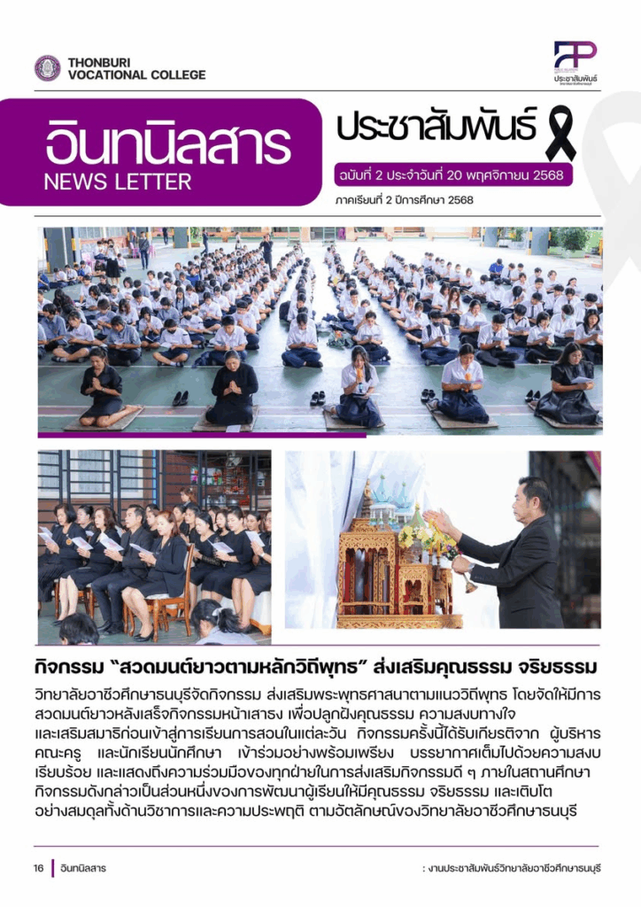 กิจกรรมดังกล่าวเป็นส่วนหนึ่งของการพัฒนาผู้เรียนให้มีคุณธรรม จริยธรรม และเติบโตอย่างสมดุลทั้งด้านวิชาการและความประพฤติ ตามอัตลักษณ์ของวิทยาลัยอาชีวศึกษาธนบุรี