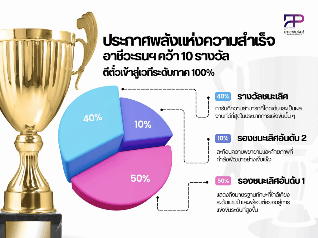 แสดงถึงมาตรฐานทักษะที่ใกล้เคียงระดับแชมป์ และพร้อมต่อยอดสู่การแข่งขันระดับที่สูงขึ้น - รางวัลชนะเลิศ 40%