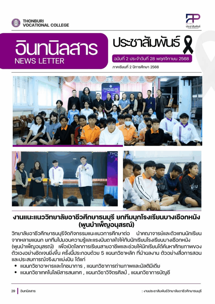 วิทยาลัยอาชีวศึกษาธนบุรีมุ่งมั่นเดินหน้าส่งต่อความรู้ และสนับสนุนเยาวชนให้เห็นโอกาสของการเรียนสายอาชีพที่หลากหลายและทันสมัย เพื่อเตรียมพร้อมสู่การทำงานจริงอย่างมืออาชีพต่อไป