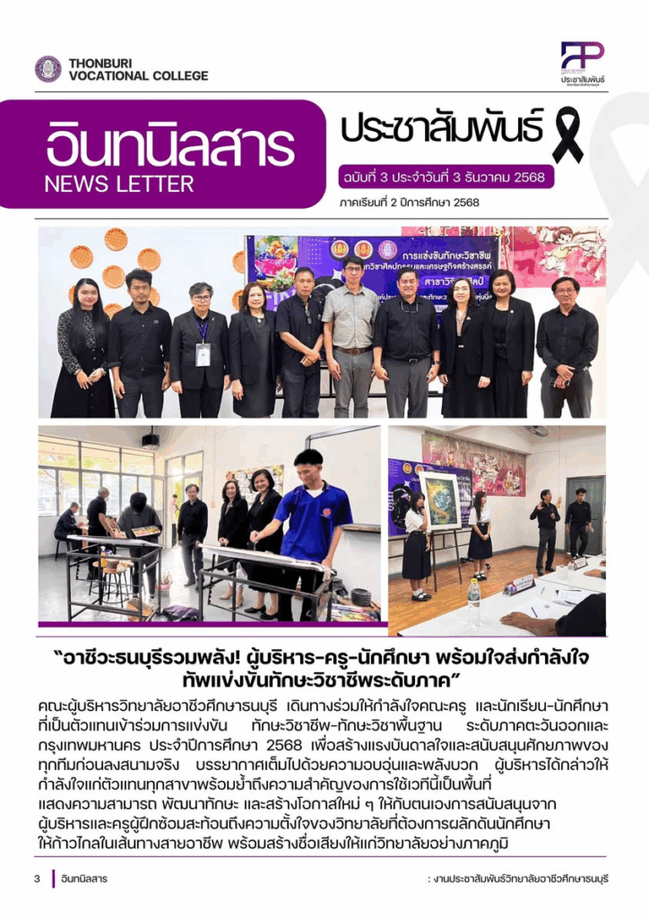 คณะผู้บริหารวิทยาลัยอาชีวศึกษาธนบุรี เดินทางร่วมให้กำลังใจคณะครู และนักเรียน–นักศึกษาที่เป็นตัวแทนเข้าร่วมการแข่งขัน ทักษะวิชาชีพ–ทักษะวิชาพื้นฐาน ระดับภาคตะวันออกและกรุงเทพมหานคร ประจำปีการศึกษา 2568 เพื่อสร้างแรงบันดาลใจและสนับสนุนศักยภาพของทุกทีมก่อนลงสนามจริง