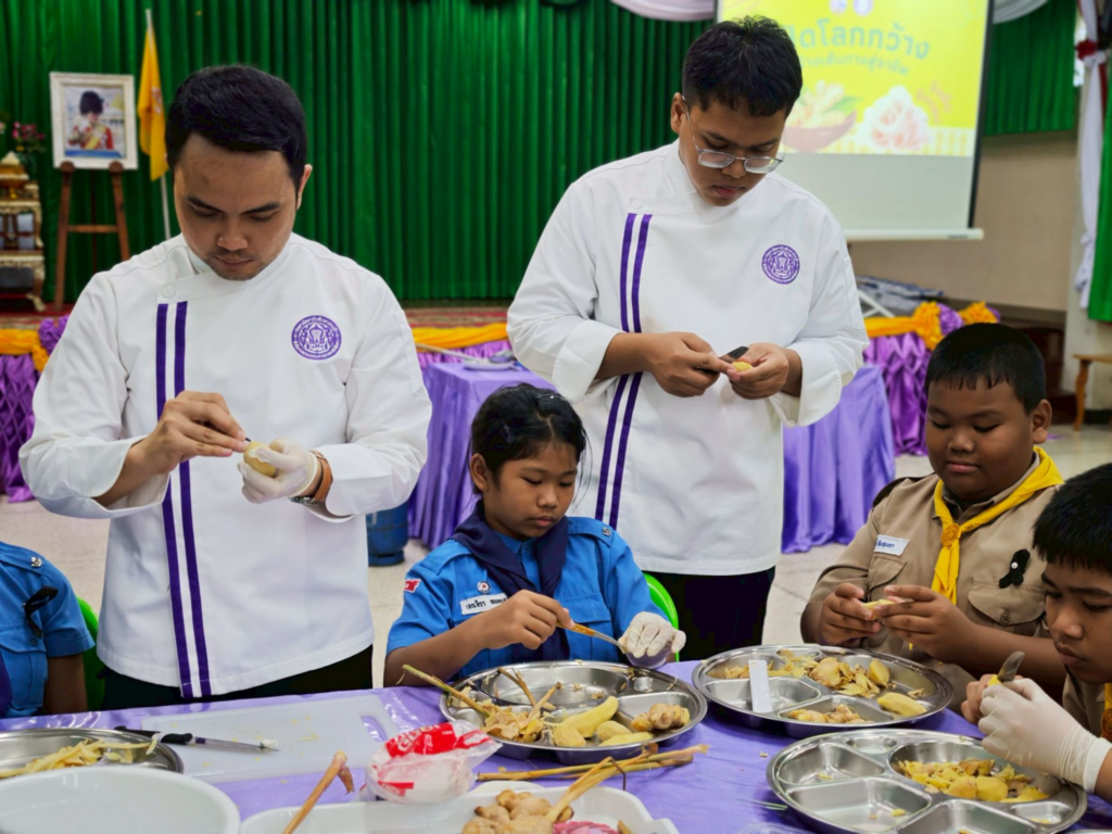 ร่วมกันถ่ายทอดเทคนิคการแกะสลักผักและผลไม้อย่างใกล้ชิด ให้นักเรียนได้ทดลองปฏิบัติจริง เสริมทักษะพื้นฐานและสร้างแรงบันดาลใจในการต่อยอดสู่อาชีพในอนาคต
