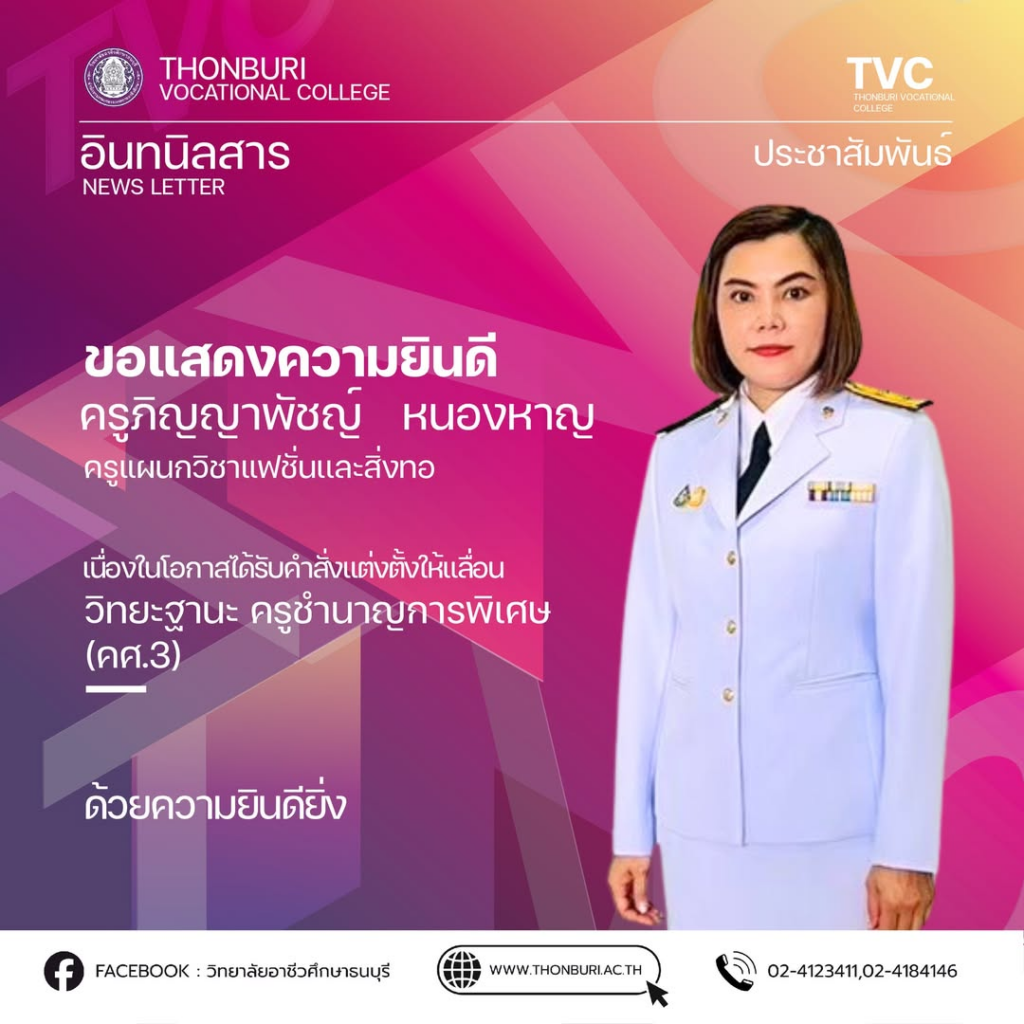 วิทยาลัยอาชีวศึกษาธนบุรี ขอร่วมแสดงความยินดีกับ