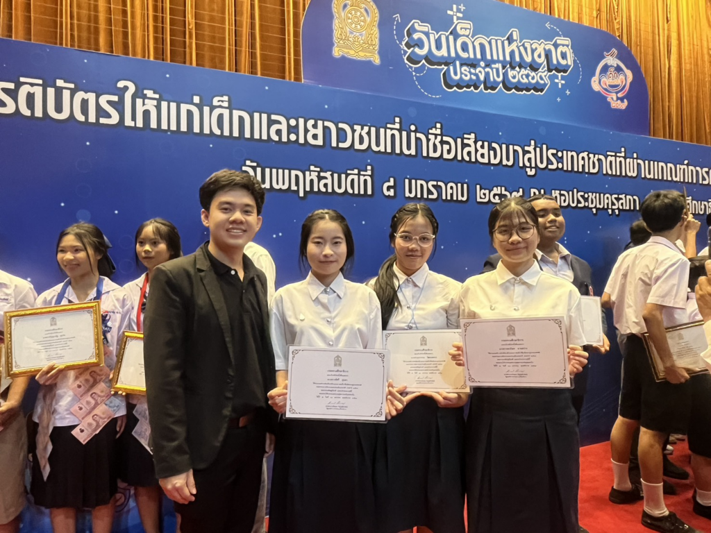 เข้าร่วมพิธีมอบเกียรติบัตร เด็กและเยาวชนที่นำชื่อเสียงมาสู่ประเทศชาติที่ผ่านเกณฑ์การคัดเลือก” ประจำปี พ.ศ. 2569 เนื่องในวันเด็กแห่งชาติ โดยมีนายสุเทพ แก่งสันเทียะ ปลัดกระทรวงศึกษาธิการ เป็นประธานการมอบเกียรติบัตรแก่เด็กและเยาวชนที่นำชื่อเสียงมาสู่ประเทศชาติ พร้อมด้วยคณะผู้บริหารกระทรวงศึกษาธิการ ในวันที่ 8 มกราคม 2569 ณ หอประชุมคุรุสภา กระทรวงศึกษาธิการ