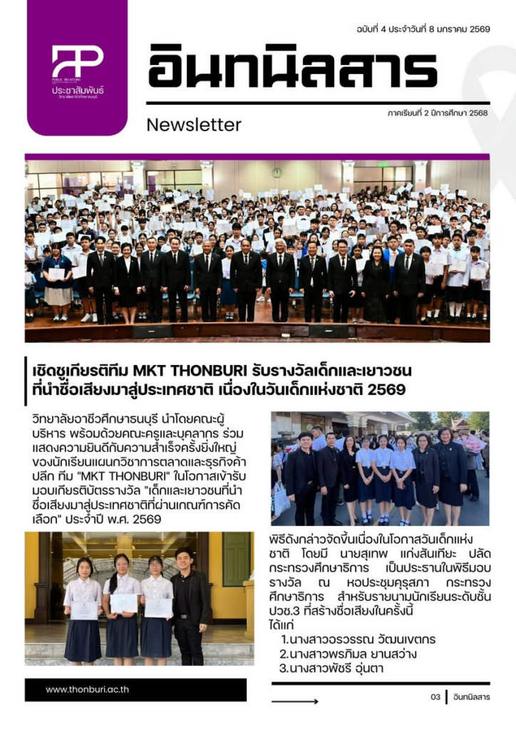 วิทยาลัยอาชีวศึกษาธนบุรี นำโดย ดร.กฤติญา วังหอม ผู้อำนวยการ พร้อมด้วยรองผู้อำนวยการ ร่วมแสดงความยินดีกับ ทีม MKT THONBURI นักเรียน ปวช.3 แผนกวิชาการตลาดและธุรกิจค้าปลีก