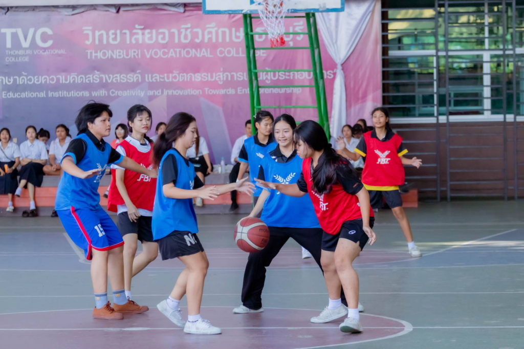 บรรยากาศการแข่งขัน กีฬาบาสเกตบอลรอบคัดเลือก ในงาน อาชีวะธนฯเกมส์ ครั้งที่ 46 ประจำปีการศึกษา 2568 เต็มไปด้วยความคึกคัก ความมันส์ และพลังของนักกีฬารุ่นใหม่ ณ วิทยาลัยอาชีวศึกษาธนบุรี