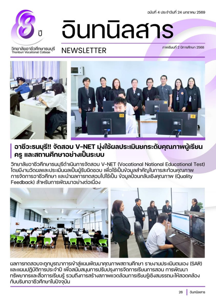 การจัดสอบ V-NET ในครั้งนี้สะท้อนจุดยืนของวิทยาลัยอาชีวศึกษาธนบุรีในการใช้ข้อมูลอย่างมีความหมาย เพื่อยกระดับคุณภาพการอาชีวศึกษาอย่างเป็นระบบ ต่อเนื่อง และยั่งยืน โดยมุ่งพัฒนาผู้เรียน ครู และสถานศึกษาไปพร้อมกัน