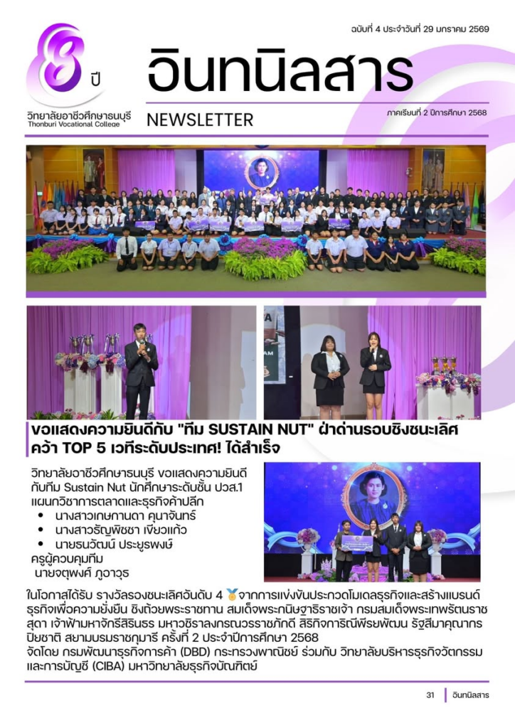 วิทยาลัยอาชีวศึกษาธนบุรี ขอแสดงความยินดีกับทีม Sustain Nut นักศึกษาระดับชั้น ปวส.1 แผนกวิชาการตลาดและธุรกิจค้าปลีก