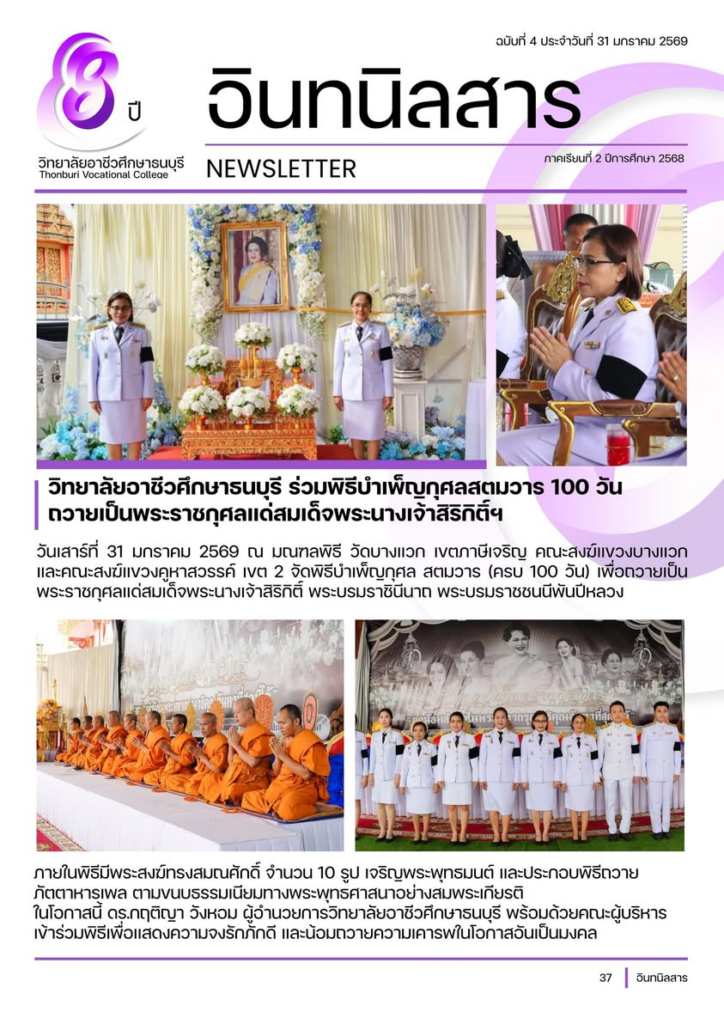 ในโอกาสนี้ ดร.กฤติญา วังหอม ผู้อำนวยการวิทยาลัยอาชีวศึกษาธนบุรี พร้อมด้วยคณะผู้บริหาร เข้าร่วมพิธีเพื่อแสดงความจงรักภักดี และน้อมถวายความเคารพในโอกาสอันเป็นมงคล