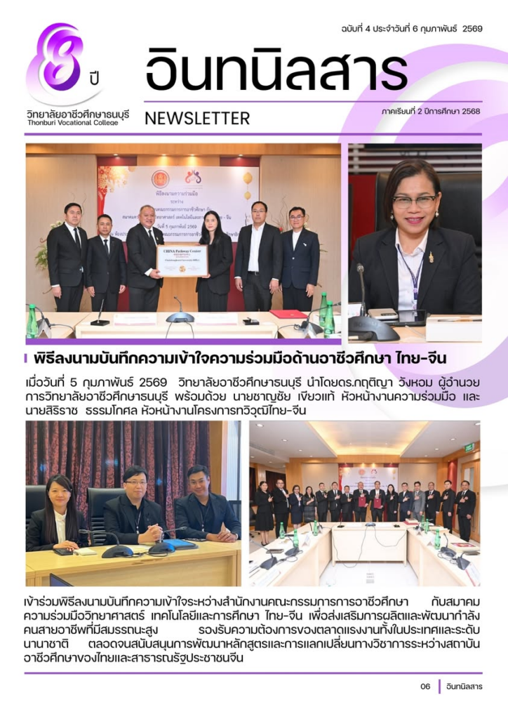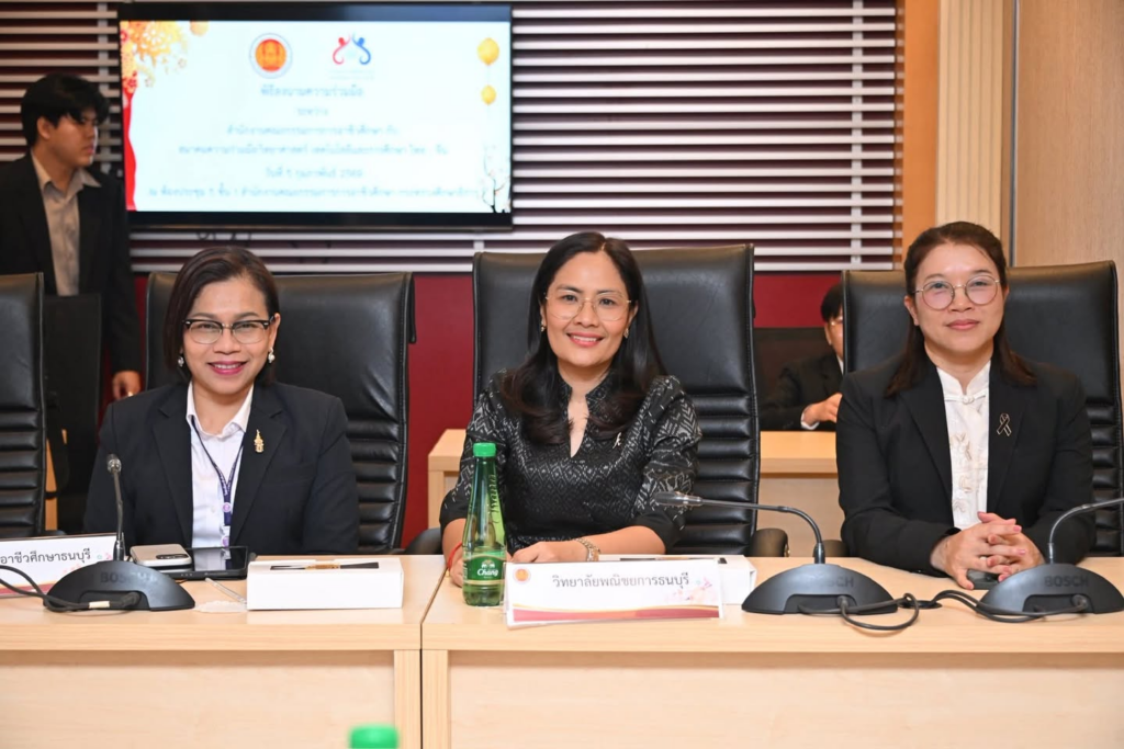 วิทยาลัยอาชีวศึกษาธนบุรี นำโดยดร.กฤติญา วังหอม ผู้อำนวยการวิทยาลัยอาชีวศึกษาธนบุรี พร้อมด้วย นายชาญชัย เขียวแท้ หัวหน้างานความร่วมมือ และนายสิริราช ธรรมโกศล หัวหน้างานโครงการทวิวุฒิไทย-จีน เข้าร่วมพิธีลงนามบันทึกความเข้าใจระหว่างสำนักงานคณะกรรมการการอาชีวศึกษา กับสมาคมความร่วมมือวิทยาศาสตร์ เทคโนโลยีและการศึกษา ไทย–จีน เพื่อส่งเสริมการผลิตและพัฒนากำลังคนสายอาชีพที่มีสมรรถนะสูง รองรับความต้องการของตลาดแรงงานทั้งในประเทศและระดับนานาชาติ ตลอดจนสนับสนุนการพัฒนาหลักสูตรและการแลกเปลี่ยนทางวิชาการระหว่างสถาบันอาชีวศึกษาของไทยและสาธารณรัฐประชาชนจีน ![]()