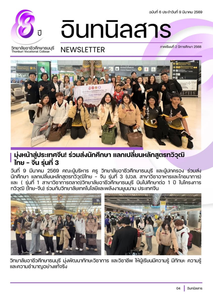 คณะผู้บริหาร ครู วิทยาลัยอาชีวศึกษาธนบุรี และผู้ปกครอง ร่วมส่งนักศึกษา แลกเปลี่ยนหลักสูตรทวิวุฒิไทย – จีน รุ่นที่ 3 (ปวส. สาขาวิชาอาหารและโภชนาการ) และ ( รุ่นที่ 1 สาขาวิชาการตลาด) วิทยาลัยอาชีวศึกษาธนบุรี บินไปศึกษาต่อ 1 ปี ในโครงการทวิวุฒิ (ไทย-จีน) ร่วมกับวิทยาลัยเทคโนโลยีและพลังงานยูนนาน ประเทศจีน