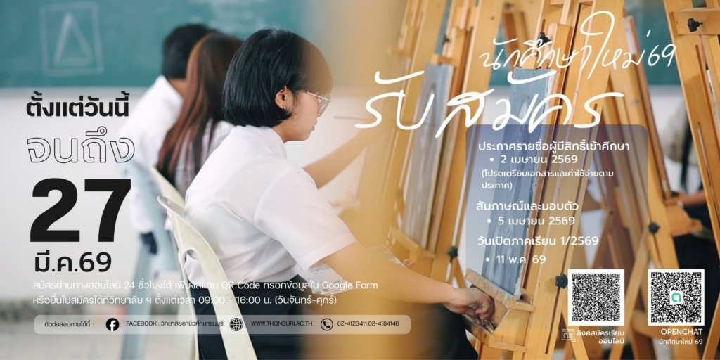 • ประกาศรายชื่อผู้มีสิทธิ์เข้าศึกษา: 2 เมษายน 2569