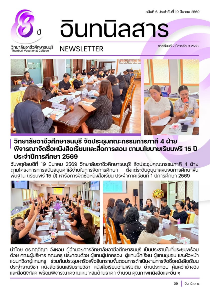 วิทยาลัยอาชีวศึกษาธนบุรี จัดประชุมคณะกรรมภาคี 4 ฝ่าย ตามโครงการการสนับสนุนค่าใช้จ่ายในการจัดการศึกษาตั้งแต่ระดับอนุบาลจนจบการศึกษาขั้นพื้นฐาน (เรียนฟรี 15 ปี) หารือการจัดซื้อหนังสือเรียน ประจำภาคเรียนที่ 1 ปีการศึกษา 2569