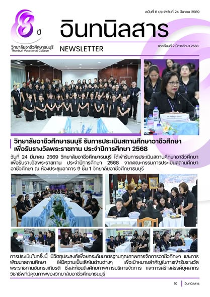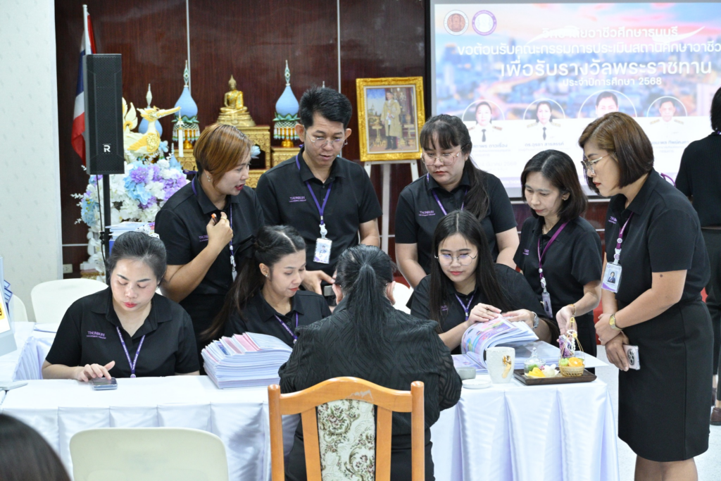 วันที่ 24 มีนาคม 2569 วิทยาลัยอาชีวศึกษาธนบุรี ได้เข้ารับการประเมินสถานศึกษาอาชีวศึกษา เพื่อรับรางวัลพระราชทาน ประจำปีการศึกษา 2568 จากคณะกรรมการประเมินสถานศึกษาอาชีวศึกษา ณ ห้องประชุมอาคาร 9 ชั้น 1 วิทยาลัยอาชีวศึกษาธนบุรี
