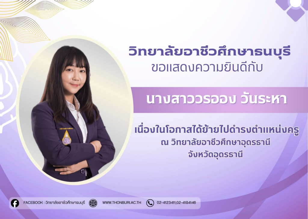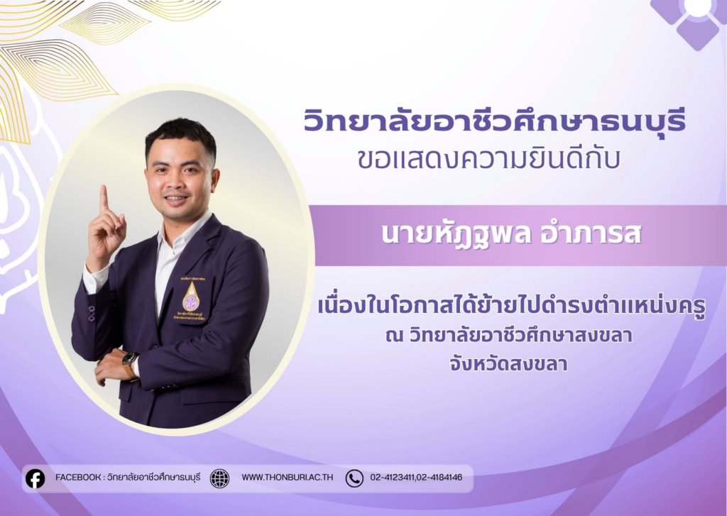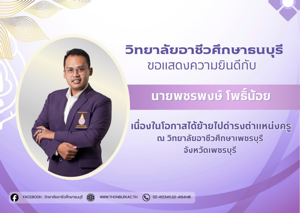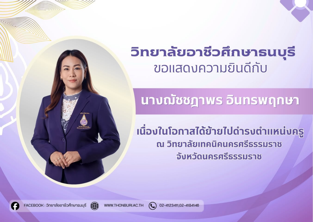 วิทยาลัยอาชีวศึกษาธนบุรี ขอแสดงความยินดี![]()
